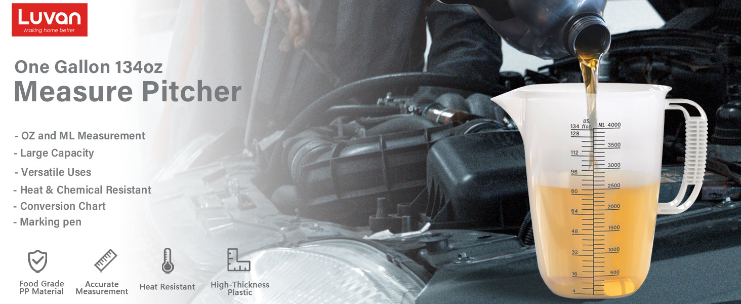 - 【Versatile Use】1 gallon measuring pitcher designed to meet a variety of needs. Popular uses: Soap making, handling lye, swimming pools and spas, beer and sweet tea making, car oil changes, lawn and garden care, industry, science, home kitchens, restaurants, hotels, agriculture. For use anywhere precise measurements are needed.