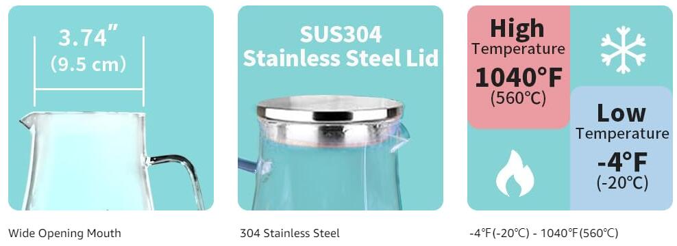 - [Made of Food-Grade High-Borosilicate Glass]: Anti-corrosive and it can withstand temperature range from -4℉ to 1040℉,Suitable for both hot or cold drinks like iced tea,hot tea,milk,coffee,juice,cold brew etc.