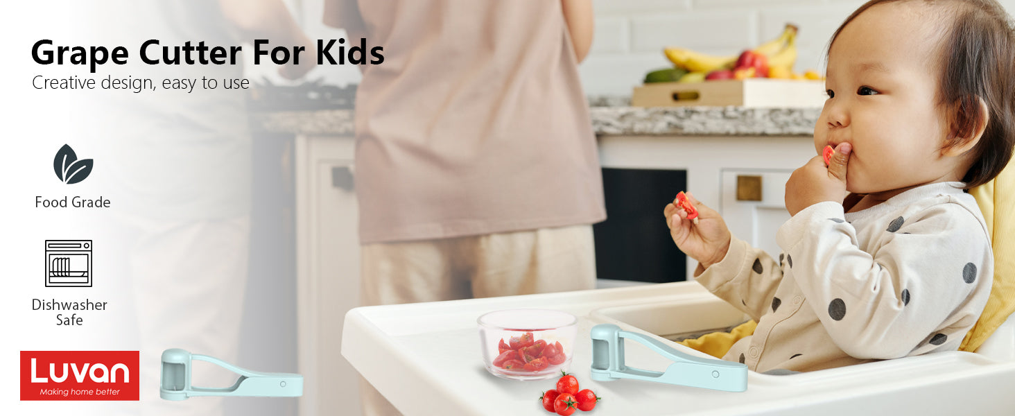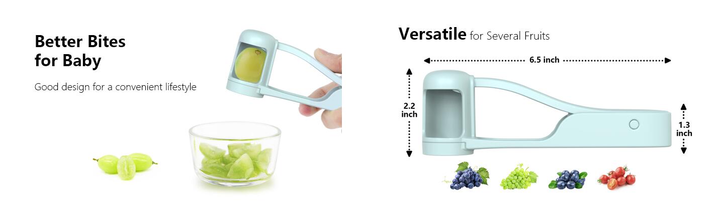 - 【Durable and high-quality】The grape cutter for toddlers is made of food grade ABS material. The 304 stainless steel serrated blade cuts through fruit easily and quickly.