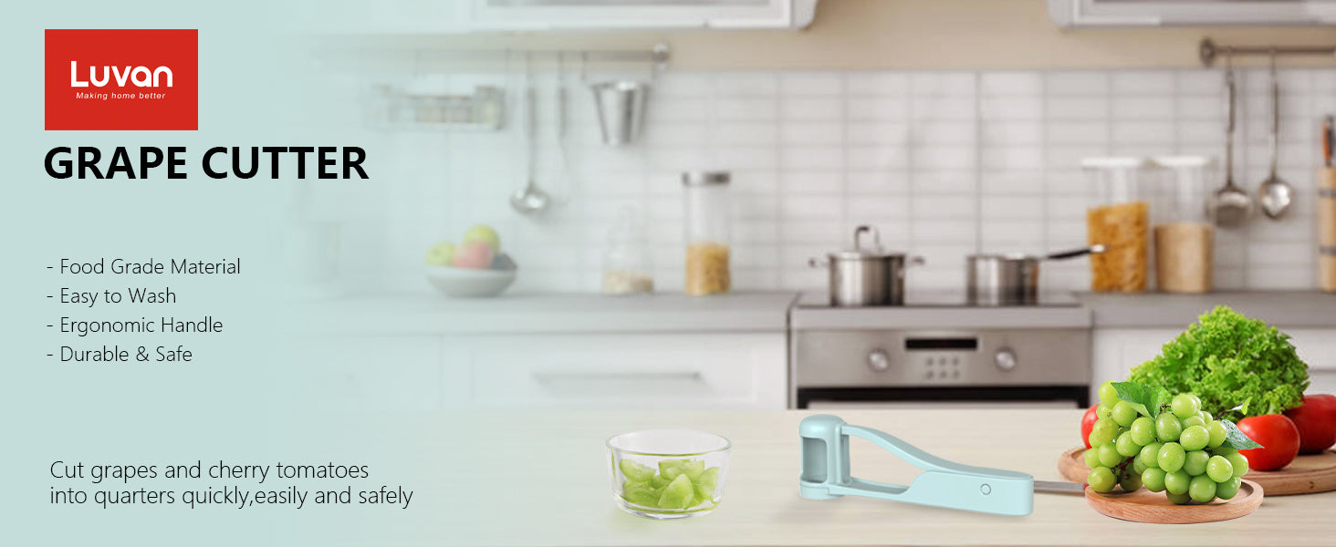 - 【Family Essentials】Small and exquisite Convenient for your storage. Easy, safe and fast cutting of fruit into 4 small pieces, save you more time. Convenient for children and the elderly to eat fruits more safely, reduces the choking hazard posed by whole grapes.