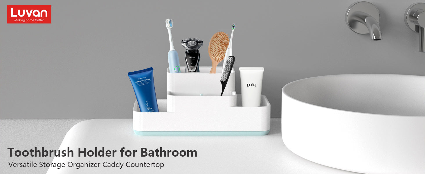 - 【Multifunctional Bathroom Organizer】Luvan Bathroom Organizer is made of food-grade PP and ABS, BPA free, you can use it with confidence; the bathroom organizer is divided into five compartments, which can store your razor, toothpaste, Toothbrushes, facial cleansers, hair accessories and other items will keep you away from the messy washbasin countertops.